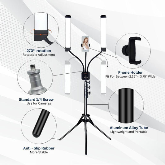 Bi-Color Dual Arm Salon Light with Stand and Phone Holder