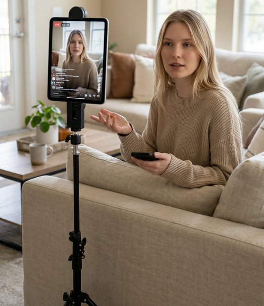 Socialite Elevate Heavy Duty iPad & Smartphone Tripod Stand with Carrying Case – Adjustable 18.9" to 8 Ft, 90° Ball Head Pivot, Universal Tablet & Phone Mount for Photography, Video, Live Streaming & Content Creation